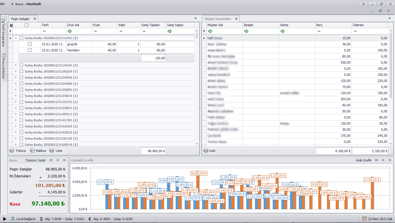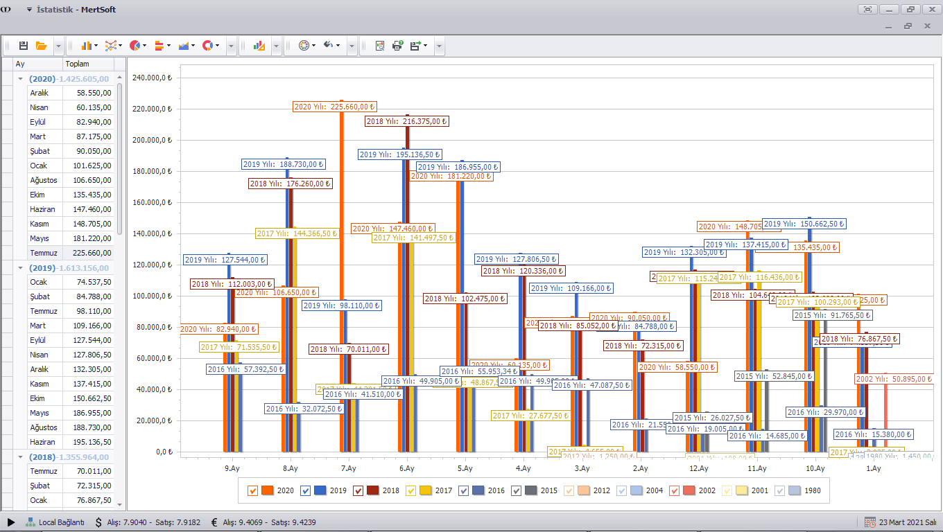 Detaylı kasa takibi. Aylara yıllara göre analiz